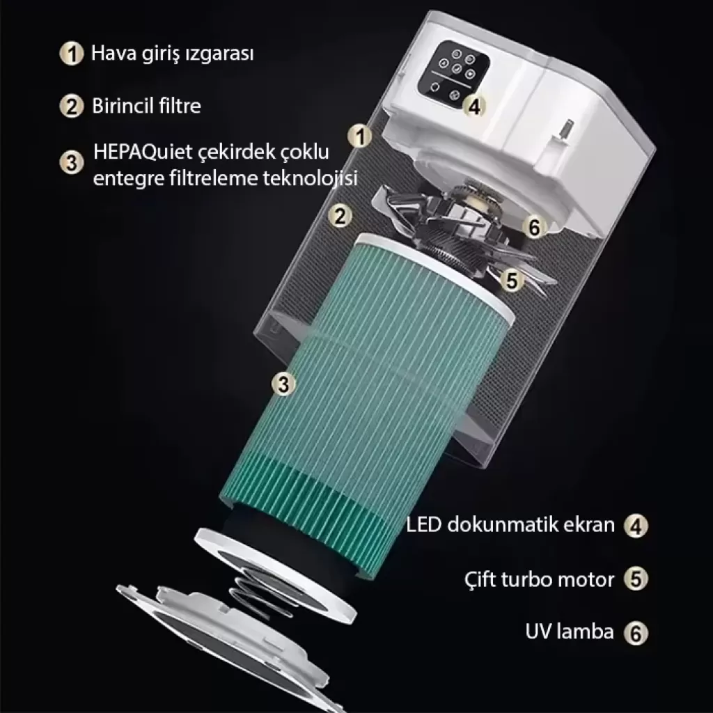 filtreleme ve her köşeye eşit nem yayılımı sağlar. Eve veya ofise kolayca uyum sağlayacak minimalist ve şık tasarıma sahiptir.
